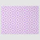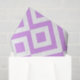 O papel de tecido na moda apresenta um padrão geométrico branco e lavanda. Os diamantes de lavanda com bordas brancas são cercados por meandros roxos leves que os rodeiam. Os ziguezags brancos separam os caminhos púrpuros enrolados e os diamantes em offset. Imagem criada digitalmente. Copyright © Claire E. Skinner. Todos os direitos reservados.