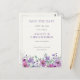 Casamento moderno elegante, salve o cartão postal com bordas florais de cor d'água em tons roxos e lavandas. Perfeito para primavera, verão e casamentos outono modernos, boho e temáticos rústicos. Tipografia moderna da serifa. Composição clássica. Totalmente personalizável. Entre em contato para obter assistência para personalizar ou personalizar seus desejos.