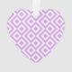 O ornamento em forma de coração apresenta uma lavanda na moda e um padrão de meander branco em cada lado. Os diamantes de lavanda com bordas brancas são cercados por meandros roxos leves que os rodeiam. Os ziguezags brancos separam os caminhos púrpuros enrolados e os diamantes em offset. Imagem criada digitalmente. Copyright © 2013 Claire E. Skinner. Todos os direitos reservados.
