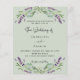 Um fundo verde sábio decorado com flores lavandas e verde de eucalipto. Personalize e seus nomes e detalhes. 1 folha = 1 convite impresso de borda a borda.