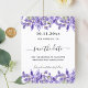 Um moderno e elegante Salve a Data para um casamento. Um fundo branco decorado com flores lavandas de cor aquosa. Personalize e adicione uma data e seus nomes. O texto: Salvar a Data é gravado com um script de estilo com letra de tendência grande. Voltar: fundo violeta 1 folha = 1 salvar a data impressa borda a borda.