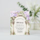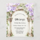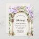 Um grande arco de mármore decorado com flores lavandas e violetas. Personalize e adicione um nome e detalhes da parte. 1 folha = 1 convite impresso de borda a borda. a