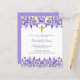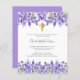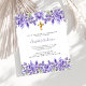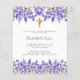 Um fundo branco decorado com flores lavandas de cor aquosa e uma cruz ouro. Personalize e um nome e detalhes. Fundo: lavanda, fundo colorido violeta. 1 folha = 1 convite impresso de borda a borda.