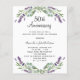 Um fundo branco decorado com flores lavandas e verde de eucalipto. Personalize e seus nomes e detalhes. 1 folha = 1 convite impresso borda a borda.