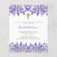Um fundo branco decorado com flores lavandas de cor aquosa e uma cruz ouro. Personalize e um nome e detalhes. Fundo: lavanda, fundo colorido violeta.