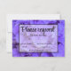 Este romântico RSVP CARD roxo é perfeito para qualquer casamento formal, botânico, floral, romântico, ao ar livre, rústico, vintage ou jardim. É uma excelente escolha para qualquer primavera ou noiva de verão. Torne-o facilmente seu, selecionando Personalizar este modelo e digitando suas informações. Em segundos você verá seus convites únicos e incríveis! Uma sofisticante hipnórdica de lavanda roxa do meu jardim! Parte de uma coleção- https://www.zazzle.com/collections/hydrangeas_lavender_lilac-119924955114862987
