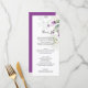 menu de casamento floral da planta lavanda. A lavanda é perfeita para um casamento de primavera ou verão. Este menu invoca imagens de campos de lavanda com seus caules graciosos e folhas perfeitas. Planta de lavanda roxa com folhas e botões verdes claros. A parte de trás do cartão está roxa.