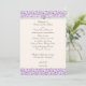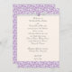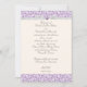 Convite de casamento padrão 5 x 7 em padrão simples de espiral florentina em tons roxos de lavanda. O padrão impresso tem sotaques gráficos de fita predefinidos em um fundo branco suave, todos formatados e prontos para serem editados com seus próprios detalhes de evento no editor de texto fácil do Zazzle. Disponível em 6 cores. Cartões RSVP, cartões salve a data, placas de tenda de mesa e envelopes internos de padrão de impressão correspondentes também estão disponíveis separadamente nesta coleção. *Permitir semanas extras para envelopes personalizados correspondentes.