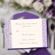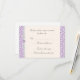 Placa de resposta RSVP em padrão simples de espiral florentina em cores roxas lavandas. O padrão impresso tem sotaques gráficos de fita predefinidos em um fundo branco suave, todos formatados e prontos para serem editados com seus próprios detalhes no editor de texto fácil do Zazzle. Disponível em 6 cores. Convite de correspondência, cartões salve a data, placas de tenda de mesa e envelopes correspondentes com padrão interno de impressão também disponíveis separadamente nesta coleção. *Permitir semanas extras para envelopes personalizados correspondentes.