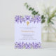 Um fundo violeta decorado com flores lavandas de cor aquosa e uma cruz ouro. Personalize e um nome e detalhes. Fundo: fundo colorido de lavanda. 1 folha = 1 convite impresso de borda a borda.