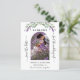 Um casamento moderno Salve o cartão com fotos de Data. Decorado com flores de lavanda, flores e verde de eucalipto. Personalize e adicione sua foto, detalhes do casamento e seu próprio código qr ao seu site de casamento.