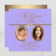 Linda foto de bebê e lavanda de fotos roxo e convite de Quinceanera dourado. Este doce roxo e foto dourada Quinceanera apresenta uma fita de ouro elegante e arco com quadros ovais dourados para duas fotos da sua linda filha - uma como bebê e a outra como ela é agora. Personalize este convite elegante para a Quinceanera, em ouro & roxo, escolhendo simplesmente o botão "Personalizar!" para começar a adicionar as suas fotografias, detalhes do evento, estilo de fonte, tamanho de fonte e cor e texto. Observe que todos os designs de cartas e convites que você encontrará no Zazzle são gráficos impressos sem joias reais, arcos, levantados, gravados em relevo ou peças ou peças adicionadas.
