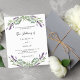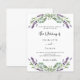 Um fundo branco decorado com flores lavandas e verde de eucalipto. Personalize e seus nomes e detalhes. 1 folha = 1 convite impresso de borda a borda.