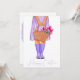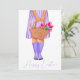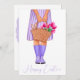Cartão de saudação de páscoa com ilustração de moda púrpura e macia com cesto cheio de tulipas cor-de-rosa e orelhas de coelho. Na parte inferior, as palavras "Felz pascoa" Adicione sua própria mensagem ao verso.