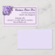 Flor de hydrangea lavanda e cartões de visitas de borda roxa. Personalize três modelos para nome comercial ou ocupação, nome, título, mídia social, e-mail, número de telefone ou outras informações de contato/local. O reverso é lavanda pálida. O design funciona melhor nesta placa de tamanho.