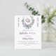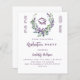 Fundo branco. Uma coroa floral feita de flores lavandas e de eucalipto verde de cor aquosa. Personalize e adicione um nome e detalhes. 1 folha = 1 convite impresso de borda a borda.