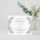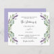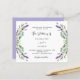 Um fundo branco decorado com flores lavandas e verde de eucalipto. Personalize e seus nomes e detalhes. Fundo: lavanda, fundo colorido violeta.