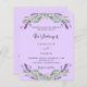 Um fundo violeta decorado com flores de lavanda e verde de eucalipto. Personalize e seus nomes e detalhes. Voltar: adicione seu URL da Web ao seu site de casamento para RSVP e mais detalhes. 1 folha = 1 convite impresso de borda a borda.