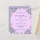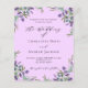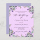 Um fundo cor-de-rosa decorado com flores lavandas e verde de eucalipto. Personalize e seus nomes e detalhes. Fundo: lavanda, fundo colorido violeta. 1 folha = 1 convite impresso de borda a borda.