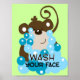 Nosso impressão de macaco "Lave seu rosto" é perfeito para seu banheiro macaco! Junte-se a nossos outros impressões (disponíveis no Zazzle) para uma incrível arte de banheiro. Faz um lembrete de excelente para seu filho! Você pode personalizar isso com sua própria cor de fundo — escolha a mesma cor ou cores diferentes para alguma arte divertida!