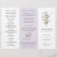 This elegant lavender tri-fold wedding program features delicate wildflower blooms in soft pastel tones paired with a refined botanical layout. The muted purple background and airy meadow florals create a romantic yet minimalist design, perfect for chic garden-inspired celebrations.
