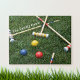 Por mais divertido que seja um jogo de croquete, este quebra-cabeça de quebra-cabeça é um desafio para todos aproveitarem. Três paletes e bolas de cores primárias, azul, amarela e vermelha estão em um gramado verde-luxuoso. Personalize com o nome da família para todos se juntarem ao ensolarado puzzling esportivo ao ar livre, até mesmo em ambientes fechados. Fotografia original do quintal por JLW_Photografia.
