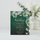 Folhas e flores modernas e sofisticadas da cor esmeralda de uma ilha tropical convidam com campos de modelo de texto em ambos os lados. Itens coordenados com este design podem ser encontrados na coleção anexa que inclui convites de casamento, rsvp, save the dates, sinal de boas-vindas, adesivos, programas, menu, convites para chá de noiva, jantar de ensaio, convites para nuestra boda, convites econômicos e muito mais. Este tema de design é perfeito para o seu casamento de destino, praia, ilha tropical, verão. Design pela marca registrada LeahG.