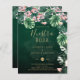 Folhas tropicais verdes esmeralda modernas e elegantes com campos de modelo de texto em ambos os lados. Itens coordenados com este design podem ser encontrados na coleção anexa que inclui convites de casamento, confirmação de presença, save the dates, sinal de boas-vindas, adesivos, programas, cardápio, convites de chá de noiva, jantar de ensaio, convites de nuestra boda, convites econômicos e mais. Este tema de design é perfeito para o seu casamento de destino, praia, ilha tropical, verão. Design pela marca registrada LeahG.