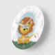 Lion Personalizado por Gênero Neutro Relógio Redondo para a mãe ser adicionada ao seu berçário de bebês. Fundo de aquarela azul, números castanhos e nome, presente de chá de fraldas perfeito para a menina. Combina com a arte da parede Be Brave.