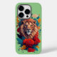 Estilo de verão Leão, iPhone 14 Pro Case floral, perfeito para o seu telefone, mude a cor do fundo se quiser