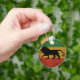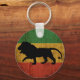 Esta chaveiro apresenta a silhueta negra do majestoso Leão de Judah em um fundo verde, amarelo e vermelho distante da bandeira rasta.
