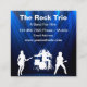 Cartões de visitas de banda de Rock projetados para uma banda de aluguer em um design legal com músicos de banda de rock em um palco iluminado no fundo e o layout clássico de dois lados do cartão de visita que você pode personalizar online.