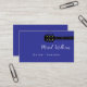 Um cartão azul profissional de na moda com informações básicas... seu nome (estilo de fonte de script branco) com ocupação de música personalizada (professor) e a imagem de um pescoço de violão gráfico... e endereço, email e telefone no verso...