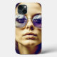 Legal arte ai representando uma mulher em óculos de sol hippie roxo com um reflexo agudo.