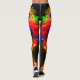 A arte abstrato acrílica foi usada para criar esse único e vibrante par de leggings enfatizando cores brilhantes e movimentos fortes.