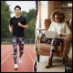 Modelos femininos fascináveis que tocam leggings abstrato brancas e pretas, uma obrigação para qualquer pessoa que busca roupas únicas e na moda.