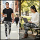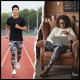Modelos femininos fascináveis que tocam leggings abstrato brancas e pretas, uma obrigação para qualquer pessoa que busca roupas únicas e na moda.