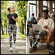 Modelos femininos fascináveis que tocam leggings abstrato brancas e pretas, uma obrigação para qualquer pessoa que busca roupas únicas e na moda.