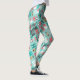 Design original de padrão 3D em leggings de ioga com pinguins adoráveis e Papai Noel em um fundo azul claro.