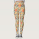 Estas leggings têm flores e folhas em tons de amarelo, laranja e cinza azul sobre fundo creme.