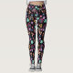 Arcos-da-chuva populares e flores em fundo negro. Estas leggings são um presente de excelente!