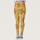 Estas leggings têm um design de deco de arte de formas de diamante feitas de ângulos sobrepostos em linhas pretas coloridas em tons de laranja e amarelo com linhas pretas diagonais fazeres a design parece argyle