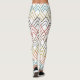 Estas leggings têm um design de arte de cabeça para baixo Vs em cores retrorativas de laranja, lacre, ouro, preto, vermelho, marrom e cinza.
