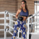 Legging Azul Daisies Floral Padrão | Leguminosas