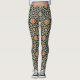 Um design em laranja, branco e vermelho sobre um fundo preto que se assemelha a um azulejo floral mediterrânico, fazer estas leggings lindas e únicas