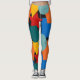 Estas leggings têm um design Bauhaus de formas aleatórias em azul, lacre, amarelo, vermelho e laranja.