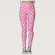 Estas leggings apresentam um padrão de bolinhas branca sobre um fundo cor-de-rosa.