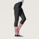 Estas leggings tendenciosas têm tudo o que amamos: Bolinhas, Stripes, Batimentos de Tintas, e Corações de Tintas Raggedy! Um aspecto super bonito, este design original de Leslie Sigal Javorek imita um par de meias de joelho riscadas horizontais vermelhas e brancas com uma borda superior branca escalada vestida sobre um par de calcinhas brancas em pontas polka pretas, acentuadas com dois corações vermelhos (1 no joelho direito, 1 no verso).