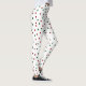 Pernas brancas com pequenas bolinhas verdes e vermelhas.