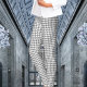 Um branco com leggings de padrões de som de cinza.